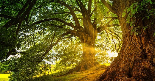 Today’s Prompt: “An ancient oak tree stands in the heart of the village, rooted in the past with its branches reaching for the future. What does this tree reveal to you?”