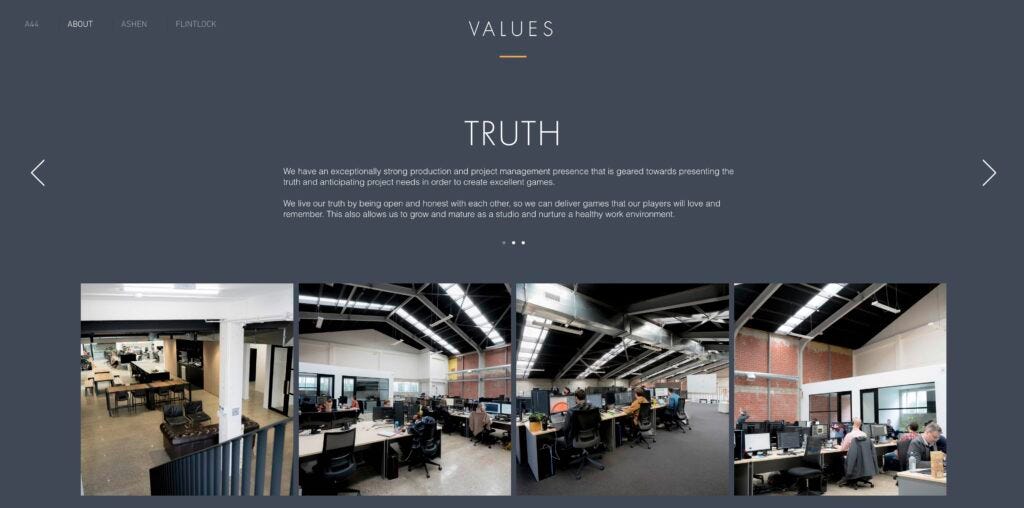 But this isn’t entirely what I mean about the Weta DNA. Remember those words I told you to remember? Truth. Accountability. Respect. These are A44’s values. They’re right there on the website — you can go check. In crafting such a believable story about friends versus enemies, they needed Nor Vanek to be relatable. She needed to command respect. And she needed to hold herself to account for her own actions. It’s a corporate mission statement baked into the code.